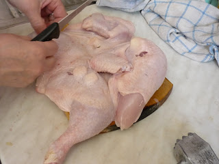 肉たたきで骨や筋肉の部分をたたいてやわらかくします。