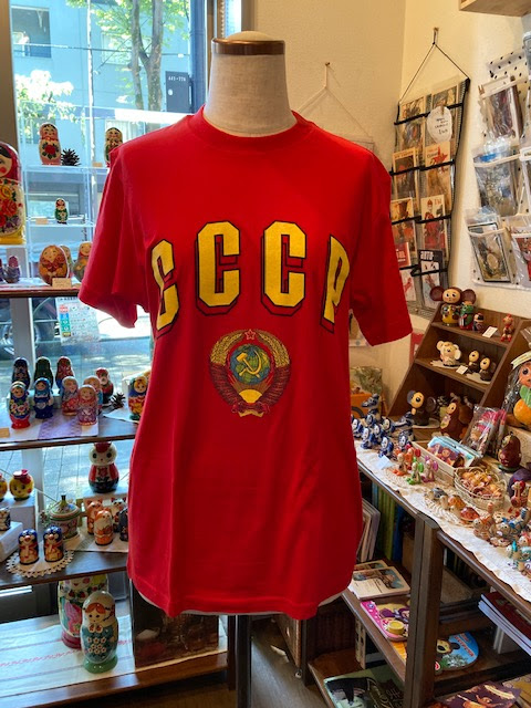 マネキンさんが来ているのは ソ連エンブレムのTシャツ。 結局夏のうちに再入荷がかなわず デザイン、サイズは在庫品のみとなってます。 |